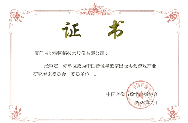 2024年7月25日,,中国音像与数字出版协会游戏产业研究专家委员会(以下简称“中国音数协游戏专委会”)成立大会在上海市召开,,,,厦门1win网络技术股份有限公司及其子公司深圳雷霆信息技术有限公司(以下统称“公司”)正式成为中国音数协游戏专委会委员单位。。