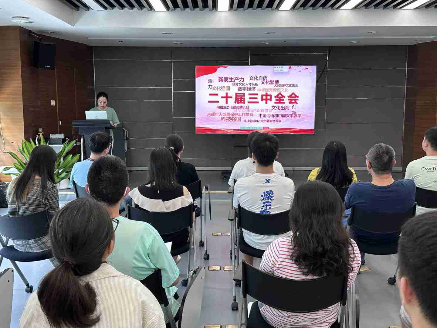 与会人员深入学习《决定》内容。。。党的二十届三中全会提出必须增强文化自信,,发展社会主义先进文化,,,弘扬革命文化,,传承中华优秀传统文化,,,,加快适应信息技术迅猛发展新形势,,,,构建更有效力的国际传播体系,,,这为广大文化产业工作者指明了奋斗方向。。。。